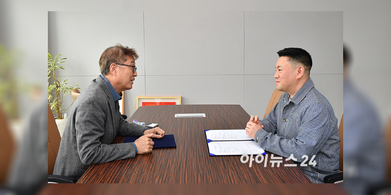 [포토] 업무협약식에서 악수하는 아이뉴스24 이창호 대표-아스펙트이엔티 장용혁 대표